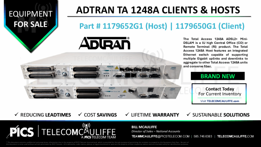 TELCOMCAULIFFE, A PICS Telecom Team, is a leading global distributor of telecom products and network equipment, offering an expansive selection of new, surplus, and refreshed products from over 1000 manufacturers. When you buy from the TELCOMCAULIFFE Team you’ll experience a wide range of benefits that not all OEMs or vendors offer.